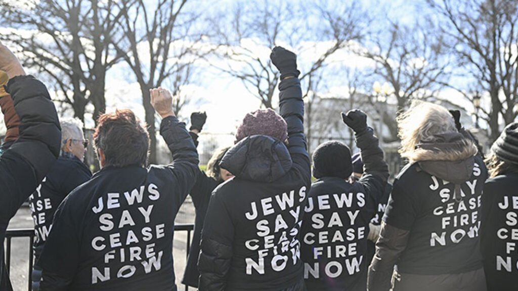 Bir grup Yahudi gösterici, Washington’ın Gazze politikasını protesto etmek amacıyla kendilerini Beyaz Saray’ın çitlere zincirledi. ABD’deki Yahudiler, İsrail’in saldırılarını sürdürdüğü Gazze’de ateşkes isteyerek Beyaz Saray önünde toplandı.