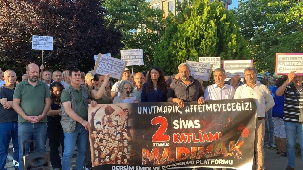 Dersim Emek ve Demokrasi Platformu, Sanat Sokağından Seyit Rıza Meydanına yürüdü. Sık sık “Sivas’ı unutma, unutturma” sloganları attı. Basın metnini DAD Eş Genel Başkanı Kadriye Doğan okudu.